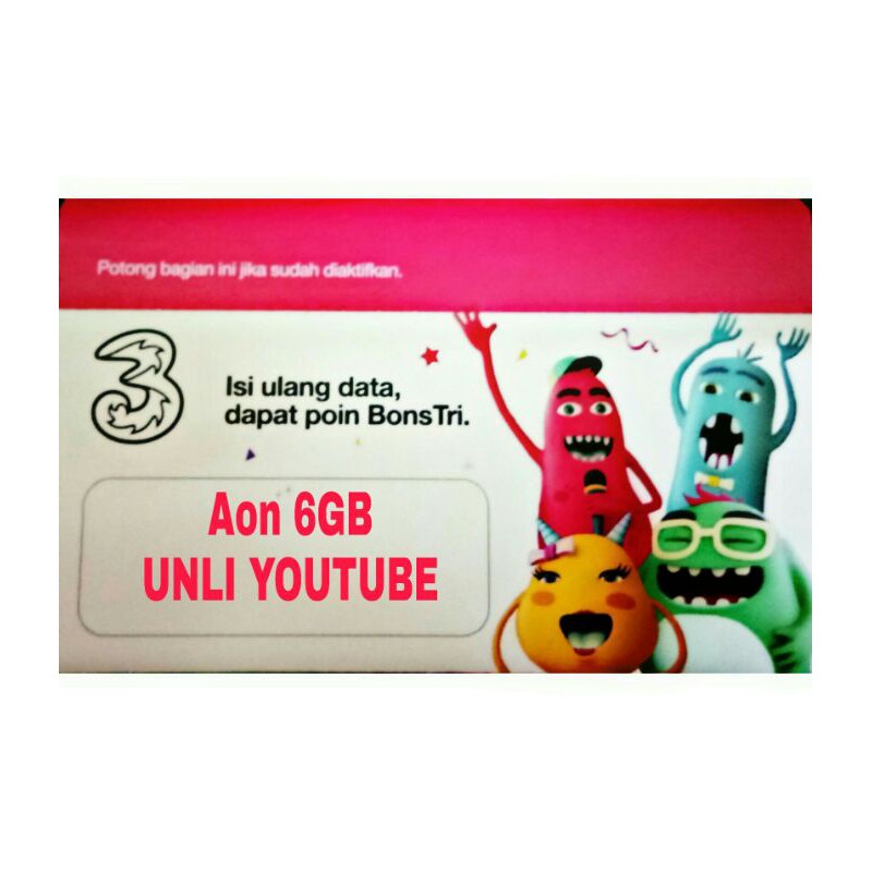 AON AlwaysOn menjadi salah satu produk unggulan yang mana kuota aktif selamanya sesuai dengan masa aktif kartu. ----- reputasi toko silahkan lihat di profil toko. Paket Internet Tri 3 Always On Unlimited Murah Youtube Tanpa Kuota Saat ini provider seluler Tri 3Three kembali mengeluarkan produk voucher murah untuk kuota data internet mirip contohnya untuk voucher dengan kuota 4 GB dibanderol dengan harga 35ribu Rupiah sedangkan untuk voucher dengan kuota 6 GB yaitu hanya seharga 42ribu begitupun dengan kuota 1 GB.